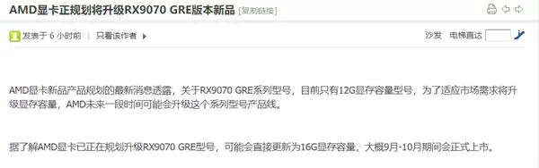 而RX 9070 XT则配备4096个流处理器,性能优势明显。这使得显存配置本就不占优的RX 9070 GRE市场竞争力进一步削弱。