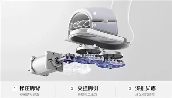 据了解,该足浴器采用气囊立体包裹设计,气囊环抱脚背和脚侧,与脚底按摩盘形成立体按摩系统,随着气囊律动,模拟压-揉-捏-松-推的按摩手法。