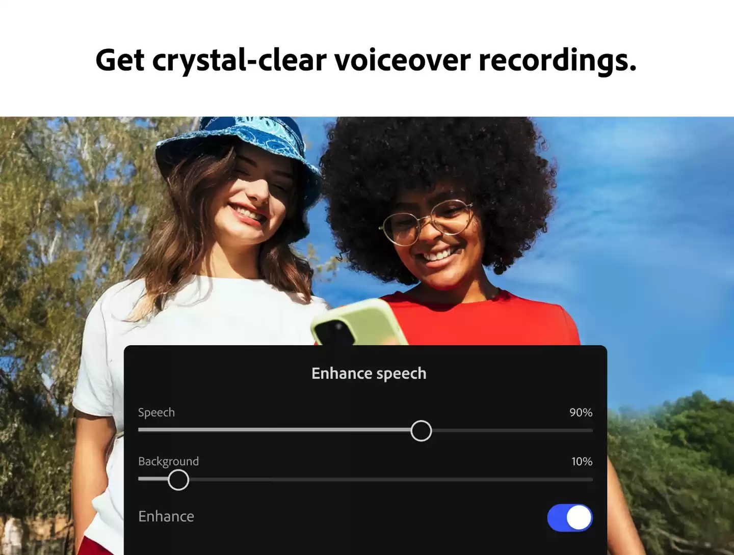 Adobe 还将在应用中加入由 Firefly 模型驱动的 AI 功能,用户可以通过文字提示生成图片、音频或视频。与此同时,Adobe 向用户开放了其音乐、音效、图片、图形和视频的素材库,并整合了 Lightroom 的字体和预设。应用还提供“Enhance Speech”功能,可在嘈杂环境下录音时自动消除背景噪音。