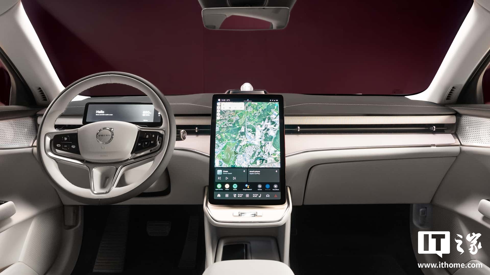 新车内饰配备了 14.5 英寸的竖向中控显示屏,可几乎掌控所有车内功能;配备四区空调和 25 个扬声器的宝华韦健音响系统。车内几乎没有物理按钮,除了方向盘上的几个按钮和窗户控制开关,完全实现数字化控制。