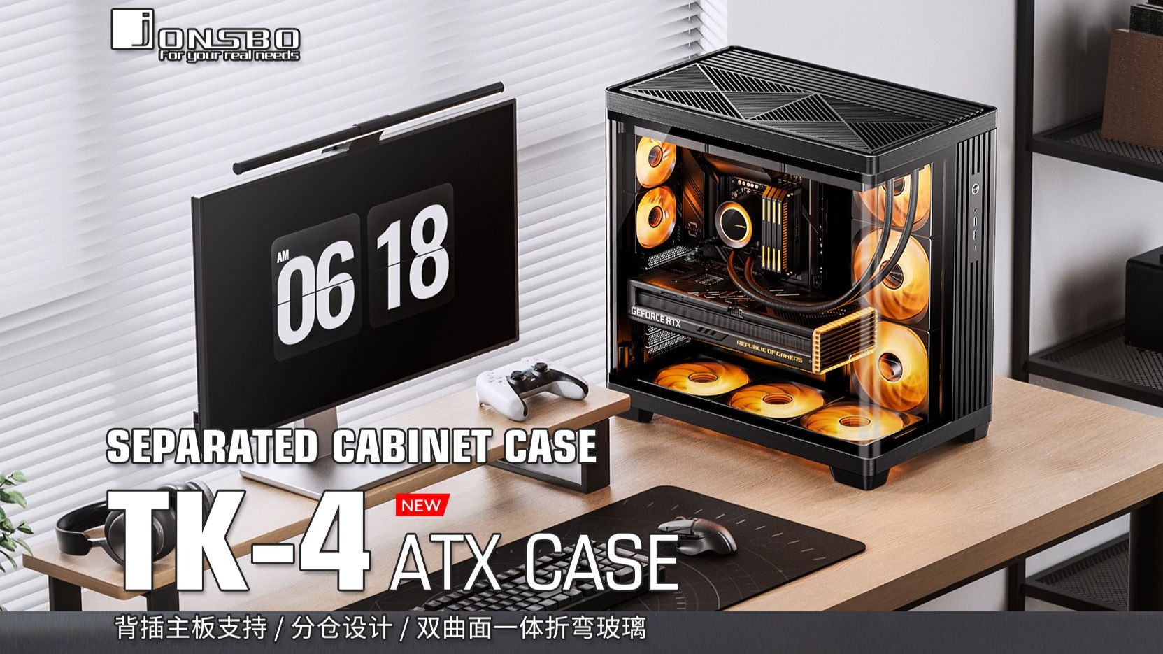 乔思伯TK-4 ATX机箱上市:一体弯玻全景设计,可选实木饰面板
