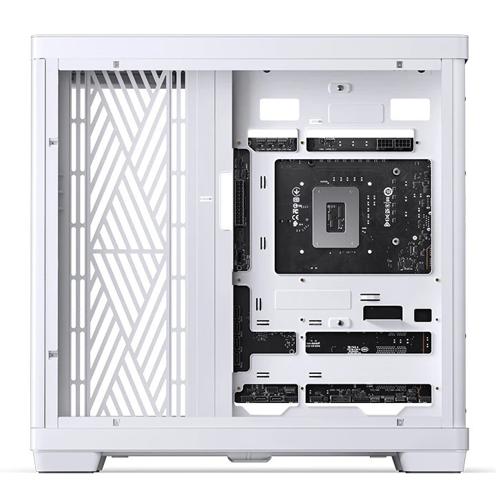 该机箱拥有 8 条扩展槽,兼容到 ATX 主板并支持背插款式,可安装 175mm 高处理器散热器、460mm 长显卡、200mm 长 ATX 电源,右侧后仓可容纳一对硬盘架。