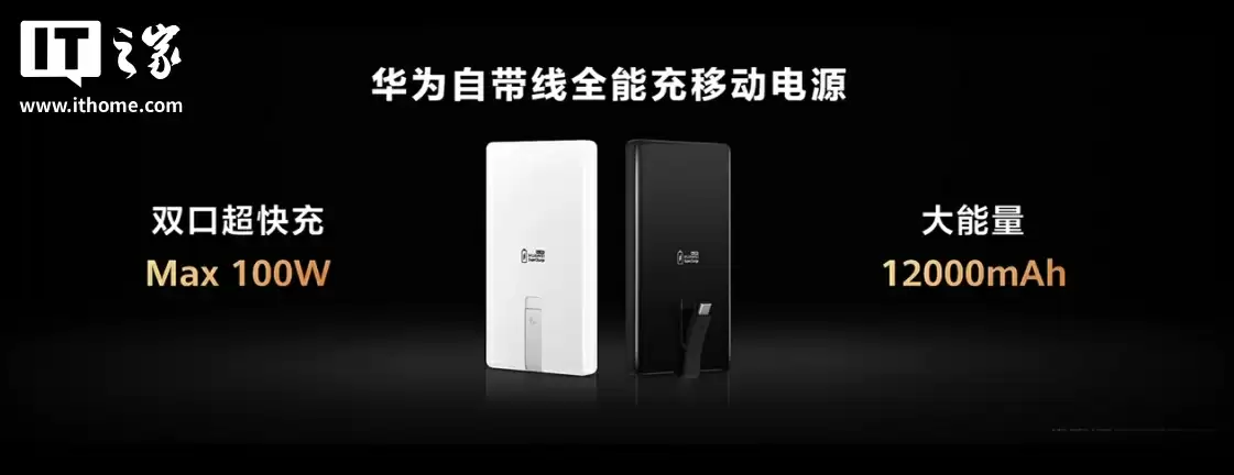 华为推100W快充移动电源:12000mAh大容量自带线,售价399元