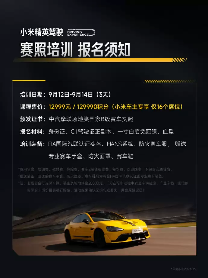 小米精英驾驶培训12999元开报,限量16席明日开启