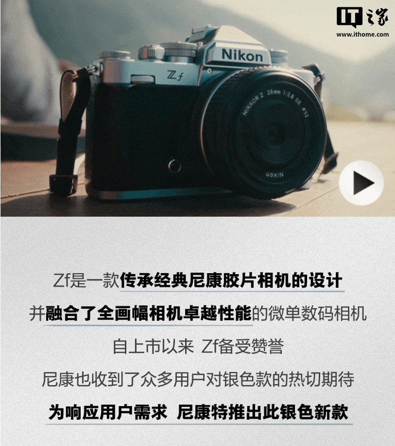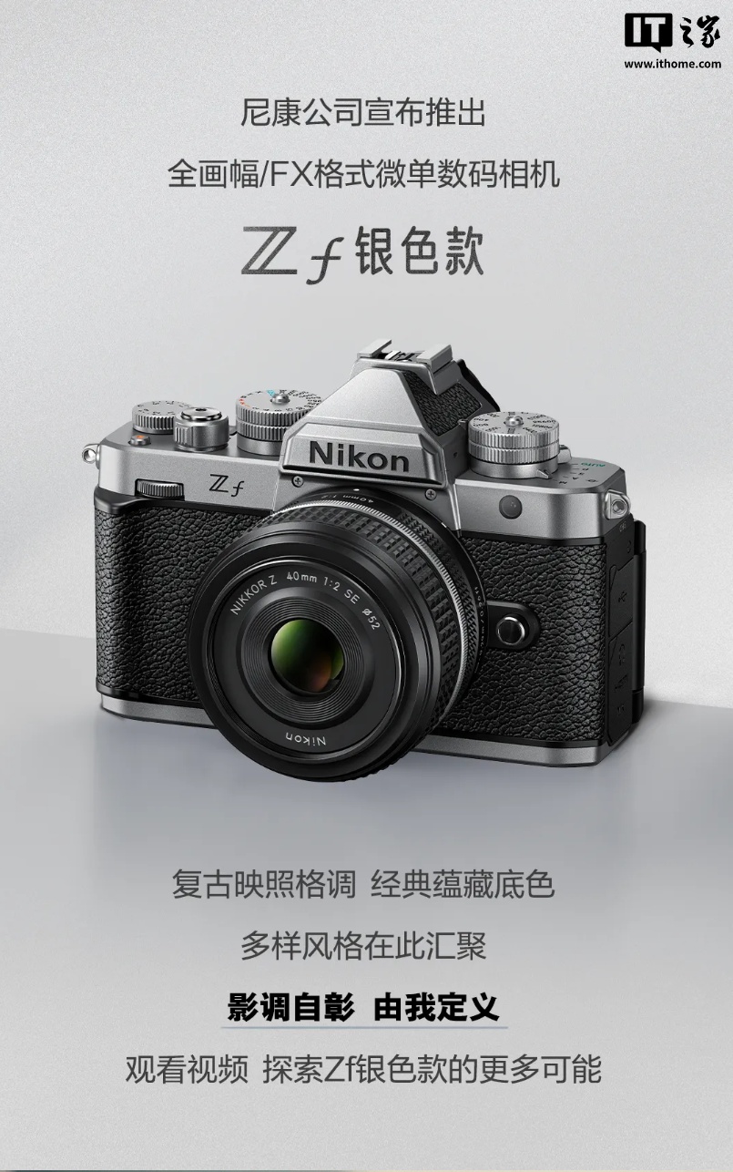 尼康Zf全画幅复古无反相机推出银色版本,本月上市并即将更新胶片滤镜