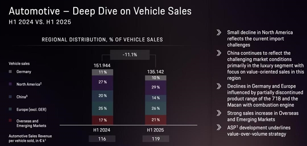 销量数据来看,保时捷在多个关键市场的销量都出现下滑,上半年,保时捷全球销量为14.64万辆,同比下滑8.8%,其中德国和中国市场出现大幅下滑,德国下滑23%,中国下滑28%,中国直接跌成第四大市场。