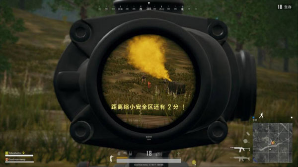 上图是信号弹射出之后的效果图,一个巨大的红色火球升到天空,会在天空停留一分钟左右的时间。一般在信号弹升空后十秒,就会有飞机飞过来放空投。并且三个降落伞的空投的降落时间是比较缓慢的。你要做的就是在这段时间内赶到信号弹下方,或者远远的瞄着,这将会是一个十分热闹的时刻。