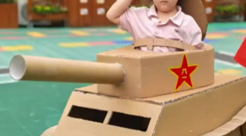 暖心亲子手工:爸爸手制纸坦克陪孩子去幼儿园