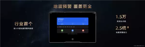 据介绍,接入中国地震局数据后,华为Mate XTs非凡大师能够实时联通全国1.5万个专业地震观察站点,将地震预警能力提升2.5倍,实现全国重点地区的秒级地震预警。