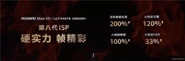 除了拍照之外,拍摄视频能力也大大提升,余承东称主要得益于第八代ISP的性能表现,实时数据处理能力提升200%,AI色彩引擎让色彩表现提升120%,同时AI视频降噪能力提升100%,AI实时HDR也有33%的提升。
