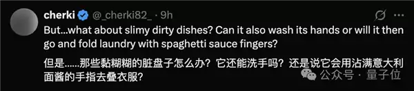 咦?它碰到脏盘子后会主动洗手吗?它会不会用沾满食物残渣的手再去叠衣服?