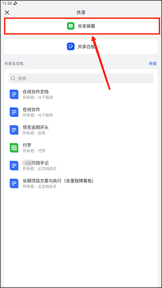 6、最后选择【共享屏幕】选项,即可完成屏幕共享设置。