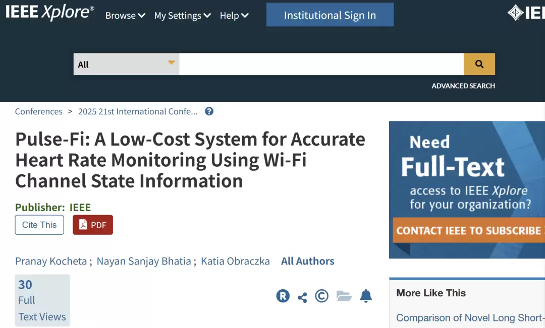 这项名为“Pulse-Fi”的技术,使用低价WiFi芯片,结合机器学习算法,在仅五秒内就能实现临床级心率监测精度。