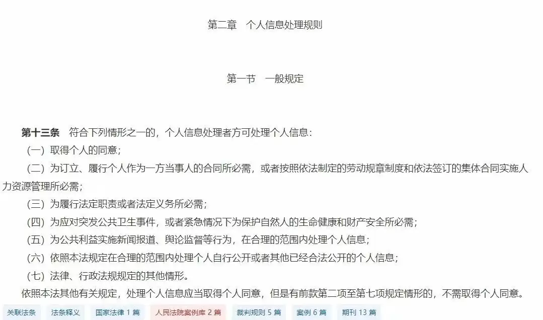 《中华人民共和国个人信息保护法》第二章规定了平台方处理个人信息的原则