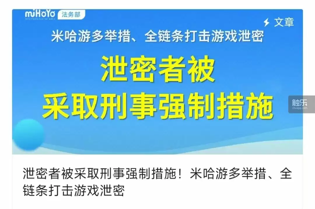 此前,米哈游法务部微博账号发布了一篇名为《泄密者被采取刑事强制措施!米哈游多举措、全链条打击游戏泄密》的文章,其中提到,QQ频道“咖啡森林”的运营者杨某某,在社群内持续发布米哈游旗下多款游戏的未公开测试包。这一事件或许与这起案件的诉讼逻辑有所关联。