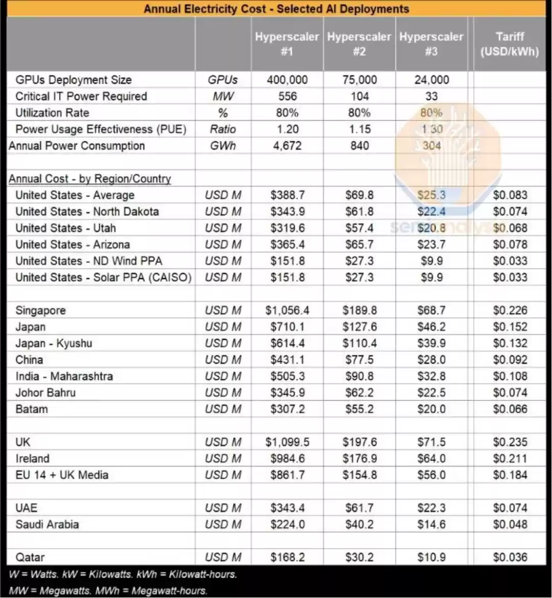 根据SIA发布的全球电力成本报告,沙特和卡塔尔的电价比美国平均电价低40%-60%。即使是电价稍高的阿联酋,也低于美国平均水平。