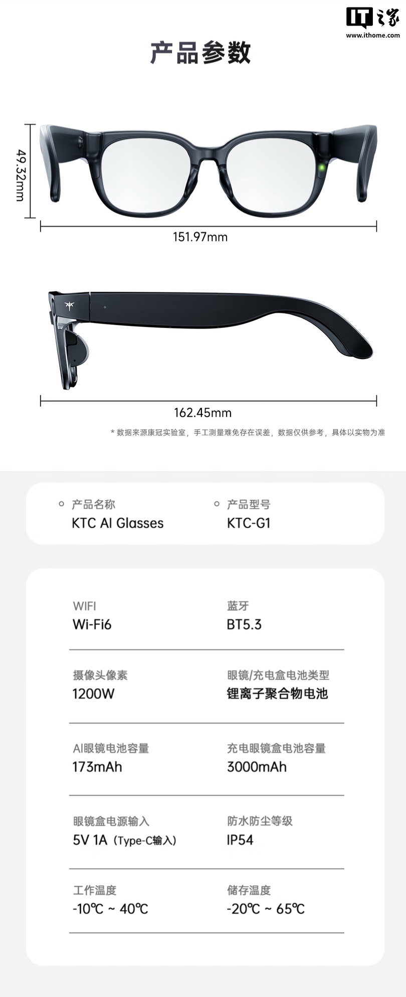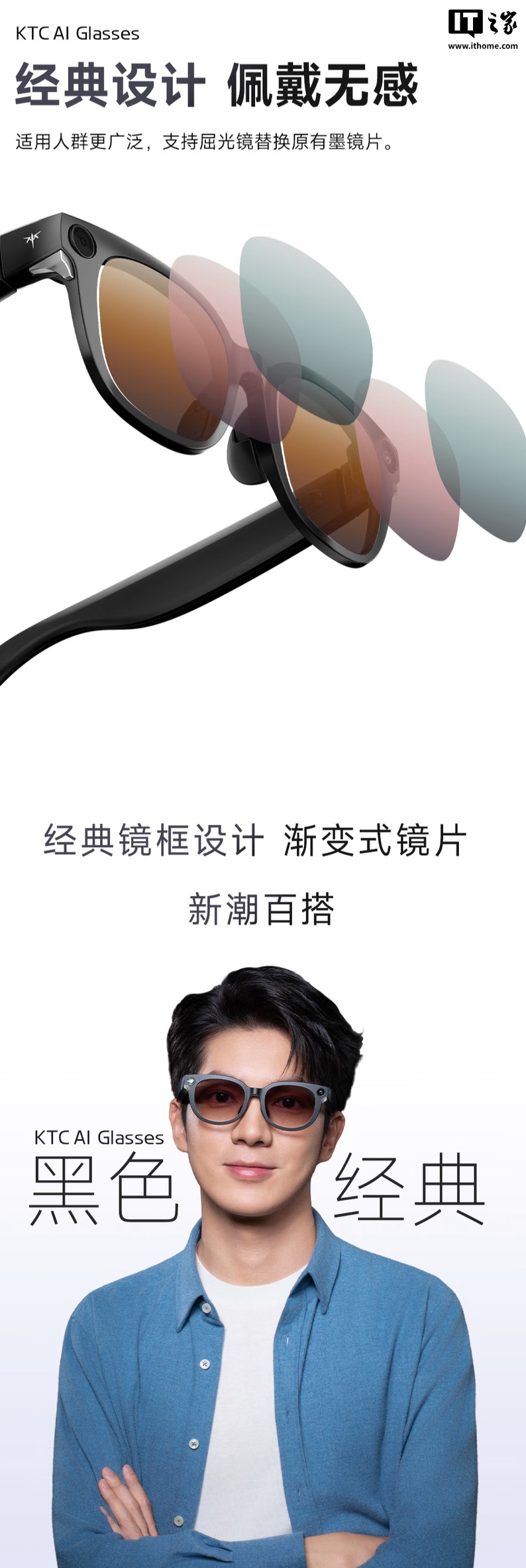 999 元 KTC 旗下首款 AI 智能眼镜发售:骁龙 AR1 芯片、39 克重量