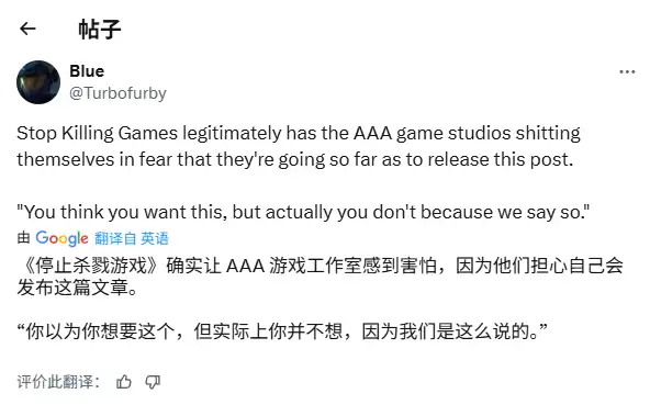 除了Scott,也有大量玩家及业内人士回应了这份行业声明,称其反而给运动带来了更多关注与正当性。尤其是在EA宣布彻底关闭《圣歌》后,该运动的核心议题再次被推至舆论风口——该游戏一旦服务器关闭,将彻底无法游玩,且玩家无法获得退款。部分玩家呼吁EA至少添加离线模式,但目前来看,这一可能性极低。