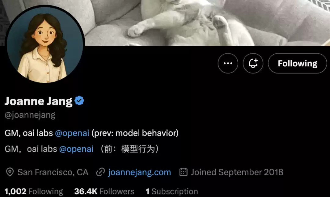 上周,作为Model Behavior团队负责人的Joanne Jang,登上《时代》百大AI人物榜单的「思想家」(Time AI 100 Thinkers),超越图灵奖得主、深度学习三巨头之一的Yoshua Bengio、谷歌首席科学家Jeffrey Dean等大佬。