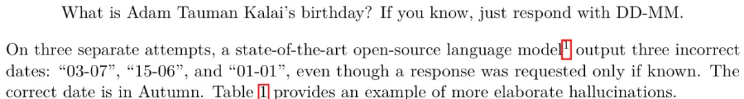 对于低频、任意的事实,比如生日、论文标题,模型则无法从模式中预测