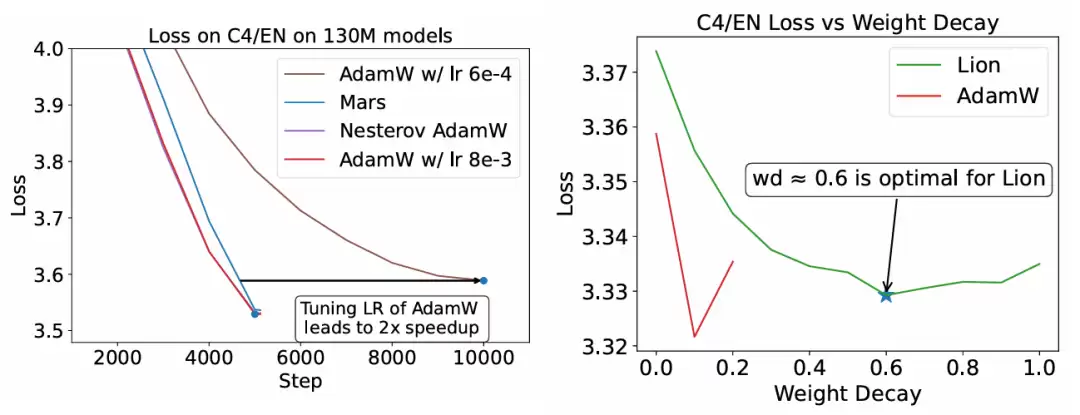 固定共享的超参数并不能保证比较的公平性:例如,与标准的权重衰减值 0.1 相比,Lion 优化器更偏好较高的权重衰减值(如 0.6)。