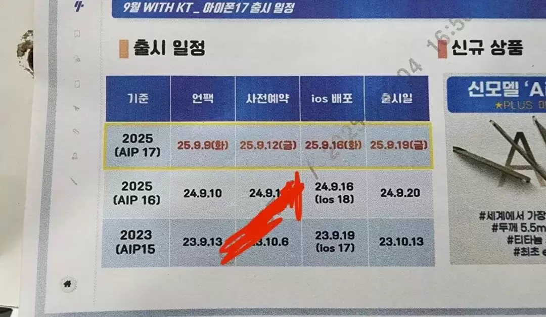 周末,韩国运营商 KT(韩国电信)内部的一份 iPhone 17 系列发布细节海报遭到曝光。