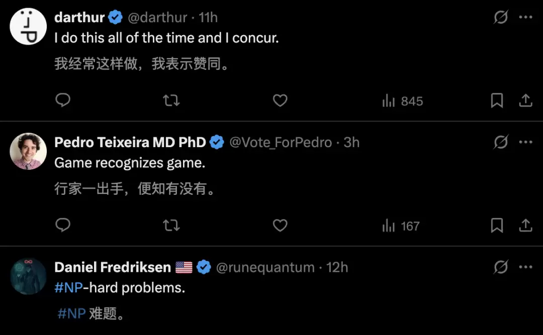 另一位网友称,「AI模型互相赞赏彼此的工作成果,这才是未来感拉满的巅峰时刻」!