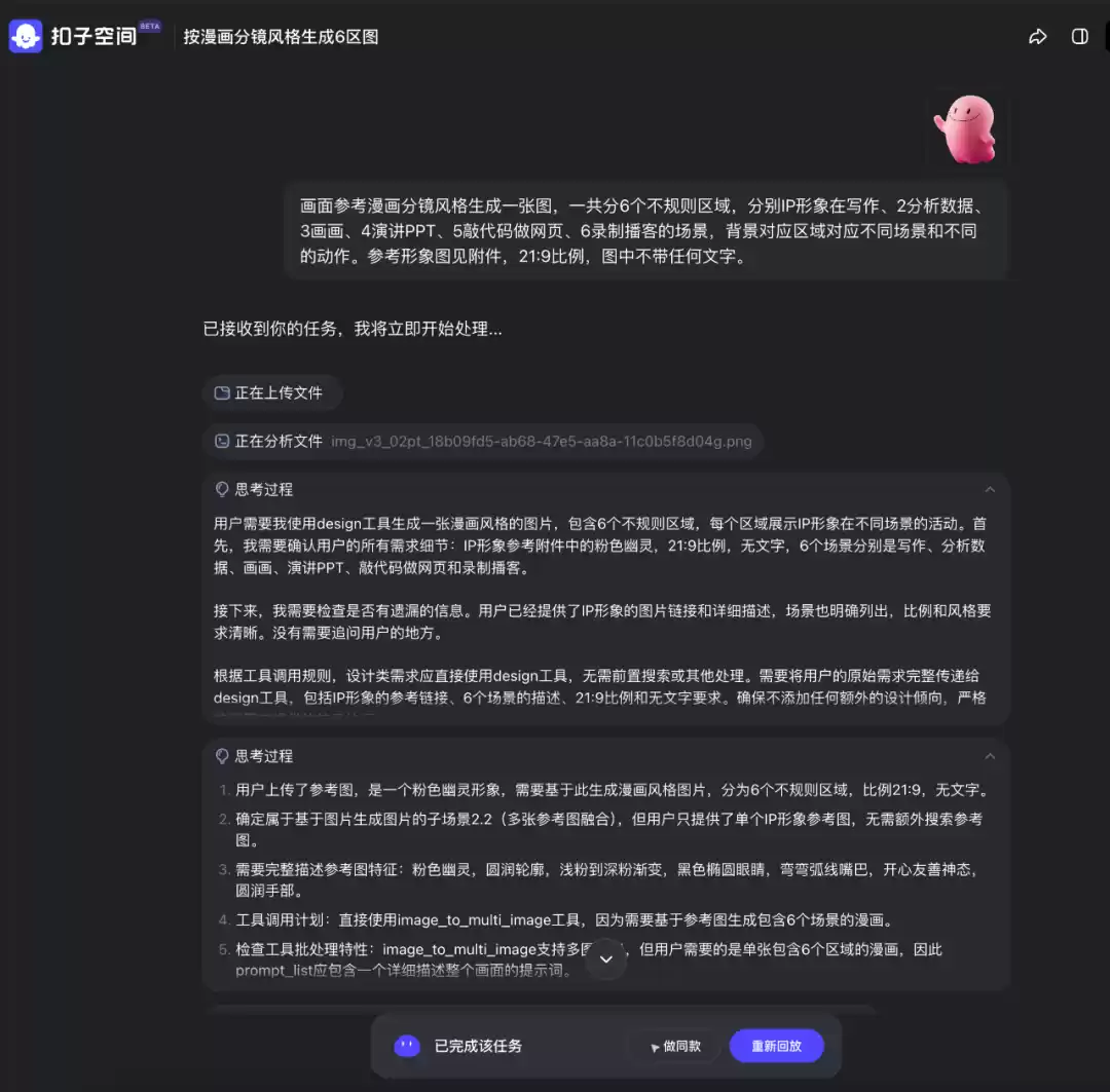在整个测试过程中,我们印象深刻的一点在于,扣子空间提供了一种“保姆式的产品体验”。它很清楚用户在使用AI时真正会遇到的麻烦,并提前把它们解决了。