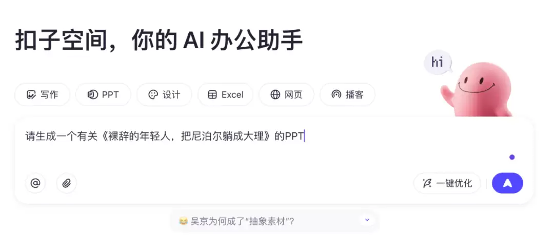 比如,在你输入模糊想法后,对话框的右下角会提供一个“一键优化”的按钮,帮你把大白话翻译成AI能精准理解的指令。