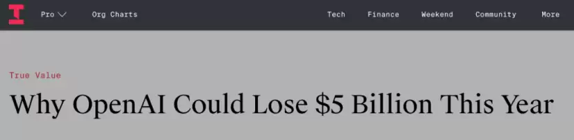 然而,收入增长的背后,是更为剧烈的成本消耗。大型语言模型的训练和推理需要庞大的计算资源,这意味着数据中心的服务器、高性能芯片以及相关的电力和维护费用是一个天文数字。2025年8月,OpenAI就被爆出年亏损超过50亿美元。