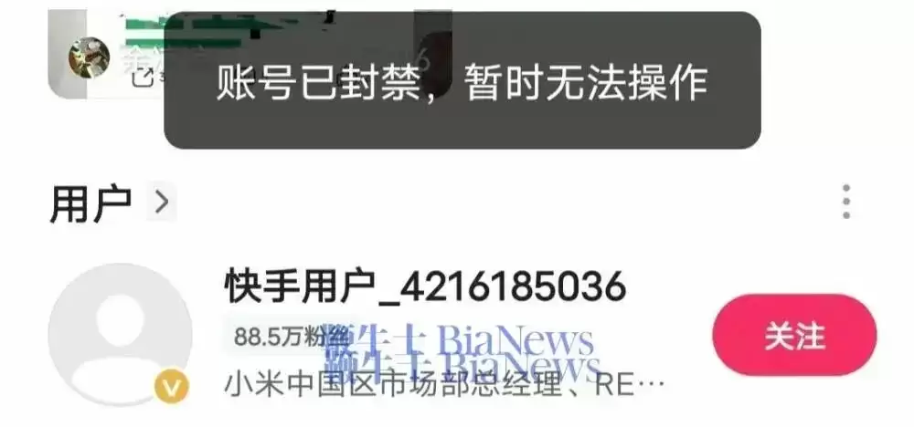 鞭牛士检索发现,小米“网红”王腾的微博最后更新于8月29日,抖音更新止于8月30日,目前快手账号已被封禁。