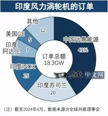 在印度,中国企业的存在感也在增强。全球风能理事会(GWEC)的数据显示,截至2024年,在印度的订单中,远景能源占4成。这是因为价格低于苏司兰能源公司(Suzlon Energy Ltd.)等当地企业。