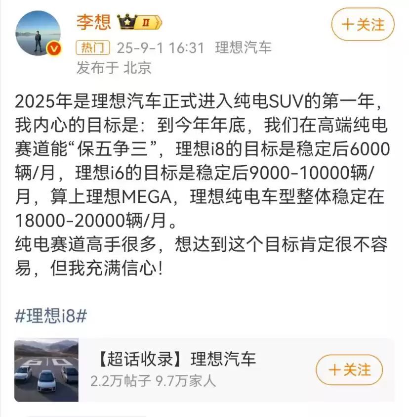 但在MEGA遭遇挫折后,我们能感觉到李想在公众视野中变得相对沉默。这在我看来,是一种资源的浪费。在公司面临销量压力、市场出现疑虑的关键时刻,最需要的就是创始人的声音。