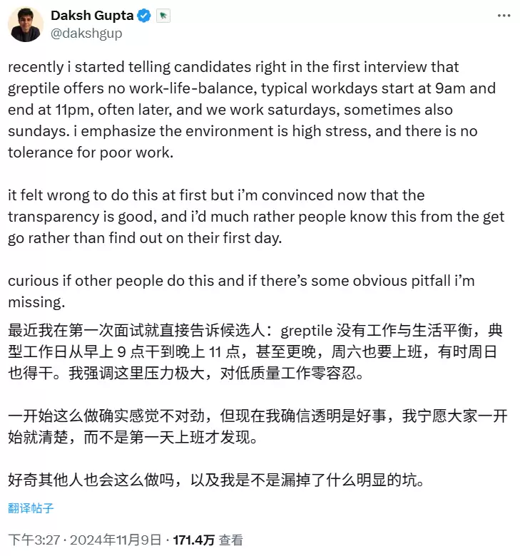 而且他还在去年公开表示,寻找愿意每周工作 84 小时(即每天 12 小时、一周 7 天)的员工,并直截了当地告诉面试者,在他的公司没有工作与生活的平衡,此番言论在当时引发了很大的讨论。
