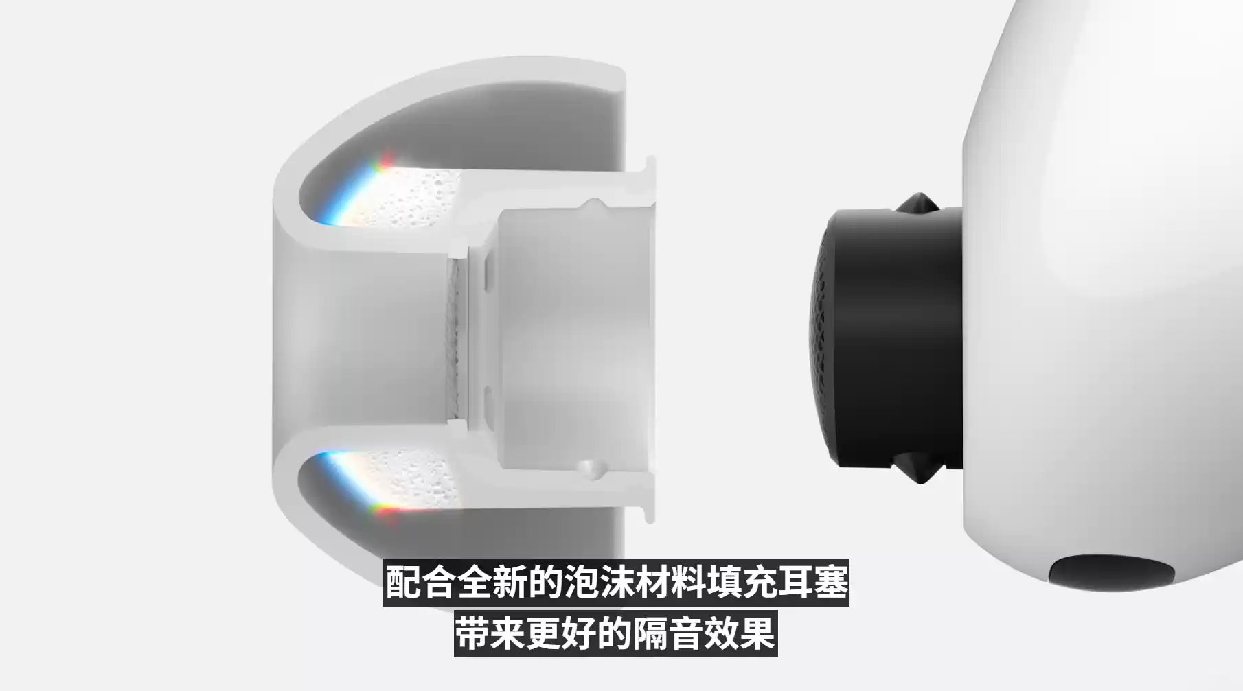 针对新款,苹果设计了一种定制的多孔声学架构,优化内部结构,实现音质上的提升,比如声场更宽、人声更清晰等。为了更好匹配用户的耳部构造,苹果重新设计了AirPods Pro 3的外观,整体尺寸变小,还搭配了全新的泡沫材料填充耳塞,赋予更好的隔音效果以及耳部贴合性。