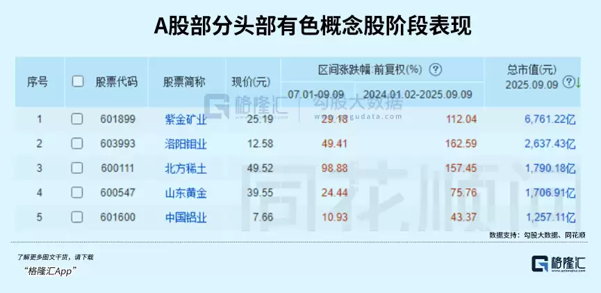 千亿市值级别的有色巨头表现同样强劲,紫金矿业、洛阳钼业7月至今分别大涨了29.18%、49.41%,而今年以来,在长线资金持续入场增持和行业利润持续改善等利好因素支撑下,它们的股价涨幅更是超过了1.1倍、1.6倍。