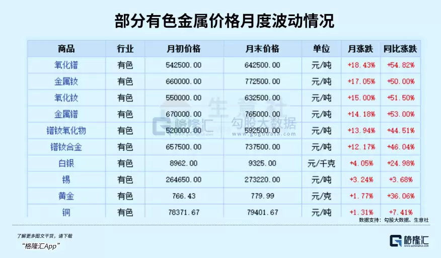 尽管铜铝铁铅镍等主流工业金属的价格并没有迎来明显大涨价,但以锑、钴、镨、钕、铋等大量小金属的价格已经几月出现了显著大涨。