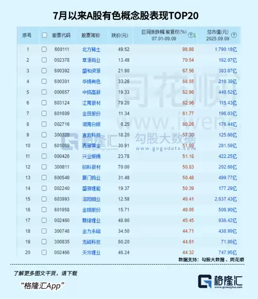 典型代表是集合了各类稀有金属的北方稀土、中国稀土等,7月至今已经强势翻倍。