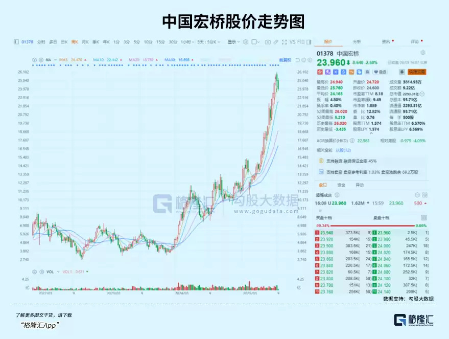 还有全球最大电解铝巨头的中国宏桥,4月8日至今股价涨幅113%,对应的国有铝业巨头中国铝业的A股仅25%。而如果从2024年初算起,宏桥的股价不到两年甚至飙涨了4.7倍(前复权),丝毫不逊色于当下热度很高的AI和芯片概念龙头。