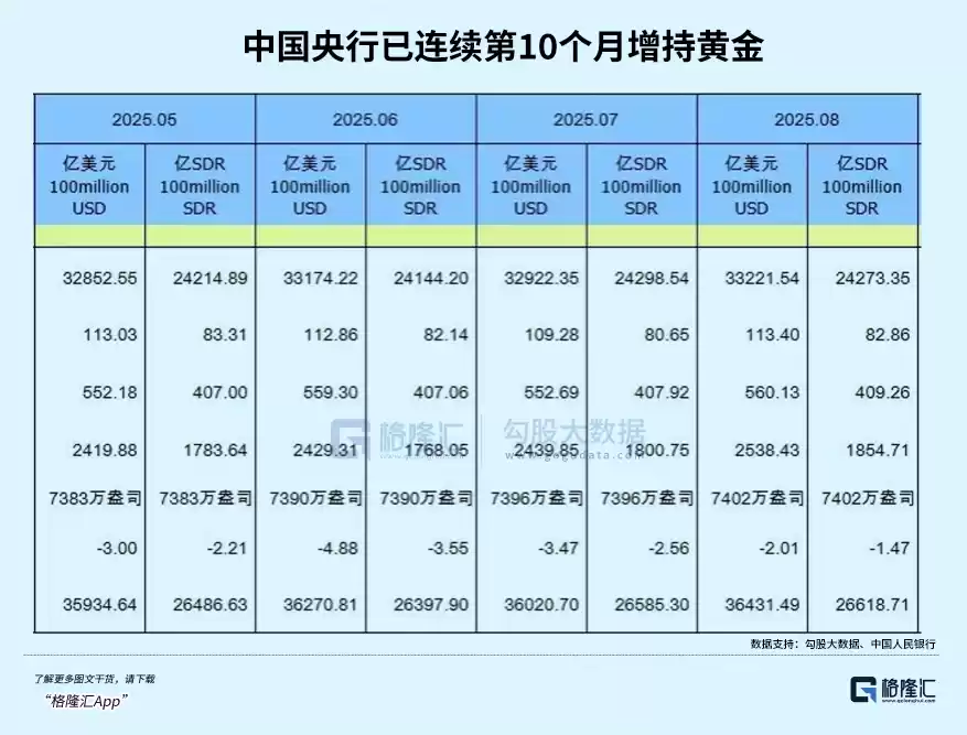 现实中,全球央行持续不断的购金行为确实也为金价上涨提供了坚实支撑和信号刺激。我国的央行9月7日数据披露,中国8月末黄金储备7402万盎司,而7月末黄金储备报7396万盎司,为连续第10个月增持黄金。