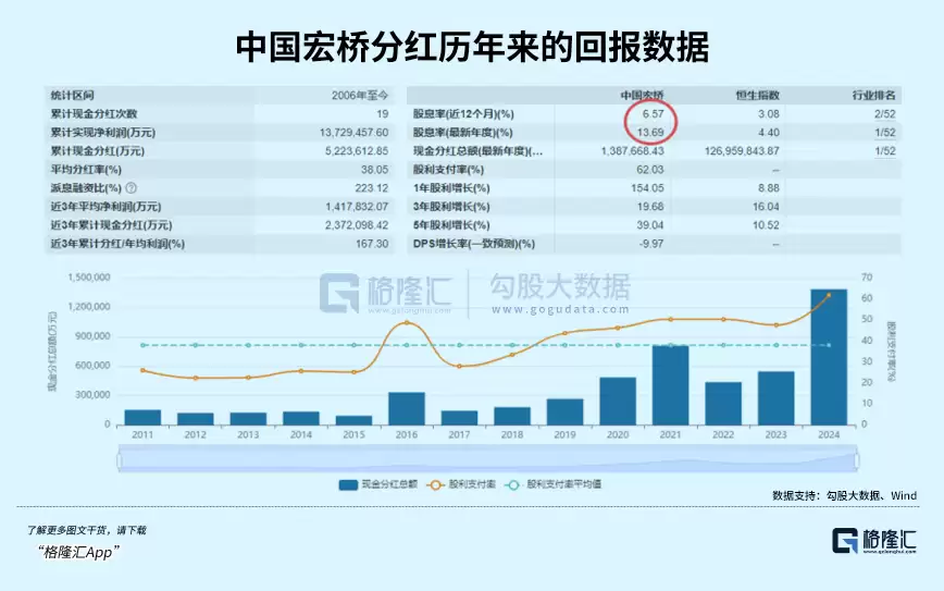 还有上面提到的全球最大电解铝巨头中国宏桥,虽然也是年内股价翻倍,但最新PE仅8.18倍,而且它近几年来随着业绩飙升,股息回报跟着水涨船高,目前最新股息率6.57%(年度13.69%),无论估值还是股息回报,在国内一众铝业同行中都是非常有吸引力的。