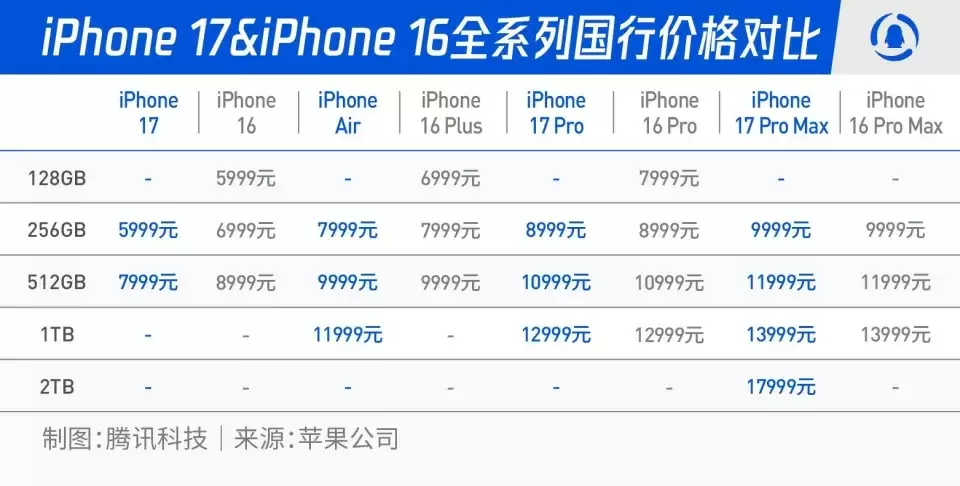 iPhone 17&iPhone 16全系列国行价格对比