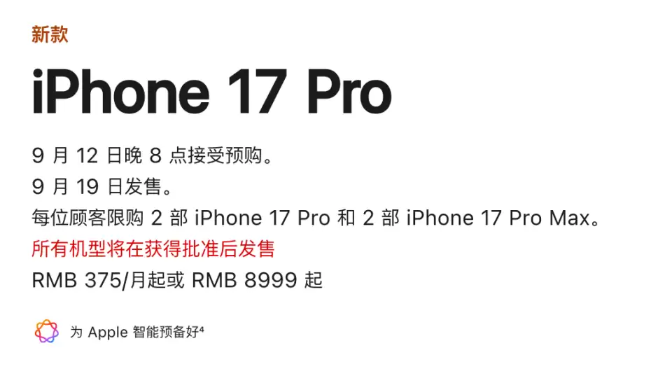 国行正式标注(硬件)“为Apple智能预备好”