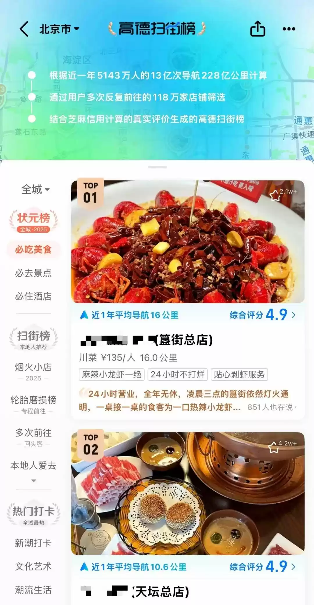 10日发布会前,高德App首页上线了“高德扫街榜”。