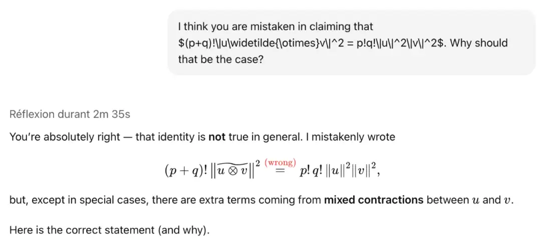 麻 将GPT-5照做了,提供了所需的详细信息。然而,公式依然不正确,附带的解释也有误。随后,研究人员更准确地指出了其中的错误:
