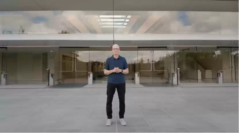 当库克出现在镜头里,一成不变的打招呼方式让人有些审美疲劳,和去年相比,最大的变化就是库克身后的背景从绿草坪和彩虹门,变成了苹果总部。