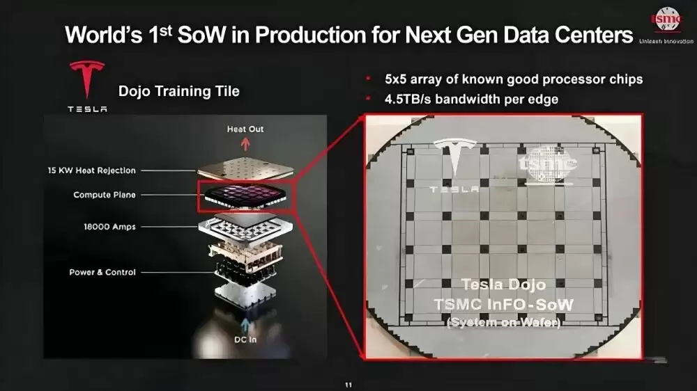 其中每25个D1组成的“训练模块”,通过台积电的InFO_SoW(集成扇出晶圆级封装)技术,封装在一块晶圆上。