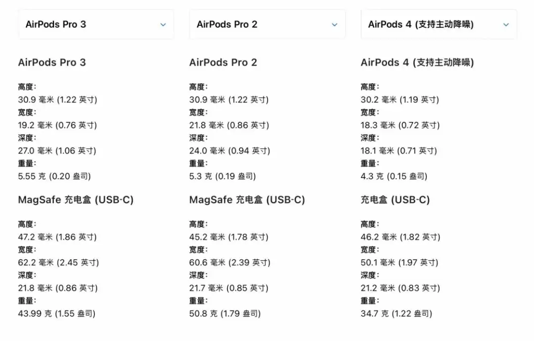 我们根据 MagSafe 充电盒的三维和重量来看,我们推测可能是 AirPods Pro 3 充电盒中电池容量略小一些。