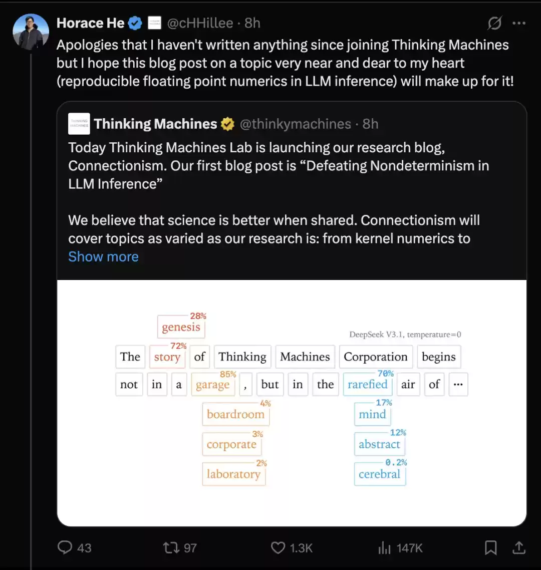 成立7个月首发声,百亿美金独角兽万字雄文:攻克LLM推理非确定性难题