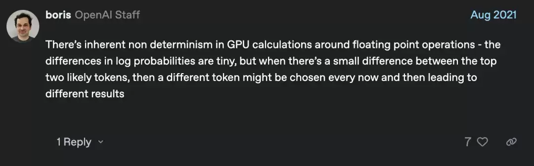 我们确实在使用浮点数,GPU确实有大量的并发计算。那为什么在这个测试中没有看到非确定性呢?⬇️